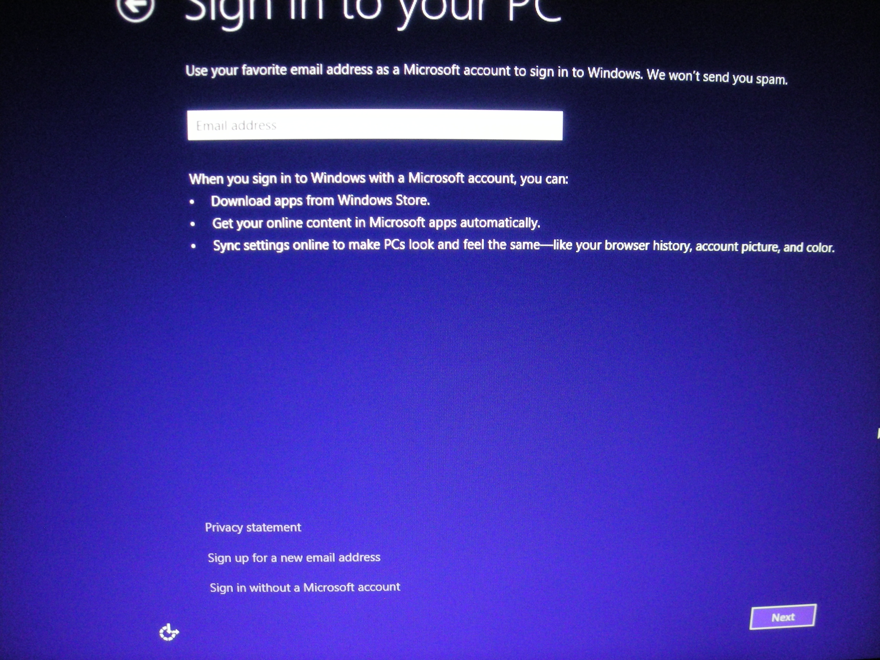 windows 8.1 setup screen